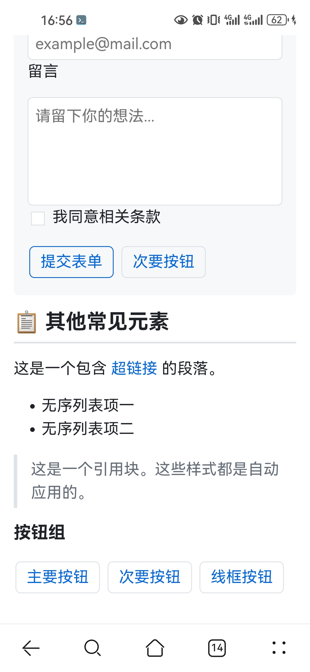 Matcha.css的设计理念很纯粹------直接美化原生HTML标签。你只需在<head>中引入这个CSS文件,所有的<button>、<input>、<table>等元素都会自动获得现代化的外观。按钮有了优雅的圆角和渐变,表单元素变得精致,排版更加舒适可读。