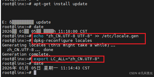 在Linux/Debian操作系统或基础镜像中遇到中文乱码时,执行以下命令即可保证控制台、日志文件都能中文不乱码