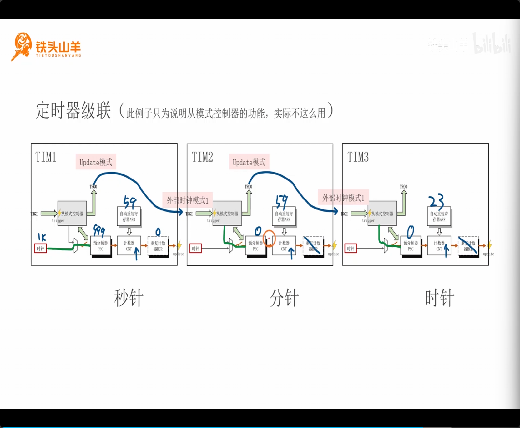 前级从模式控制器的 TRGO 设置为主模式-使能模式,