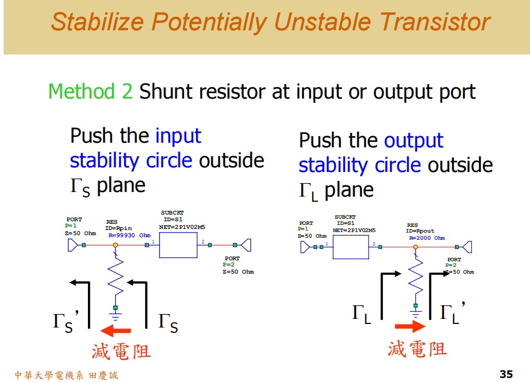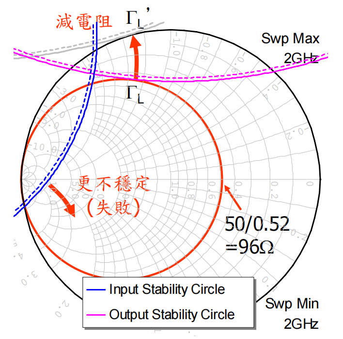 - 原因:当你在输入端串联电阻并将输入稳定圆 "推" 出史密斯圆图外时,输出稳定圆也会自动被推出去。反之亦然。因此,只需处理一端即可。