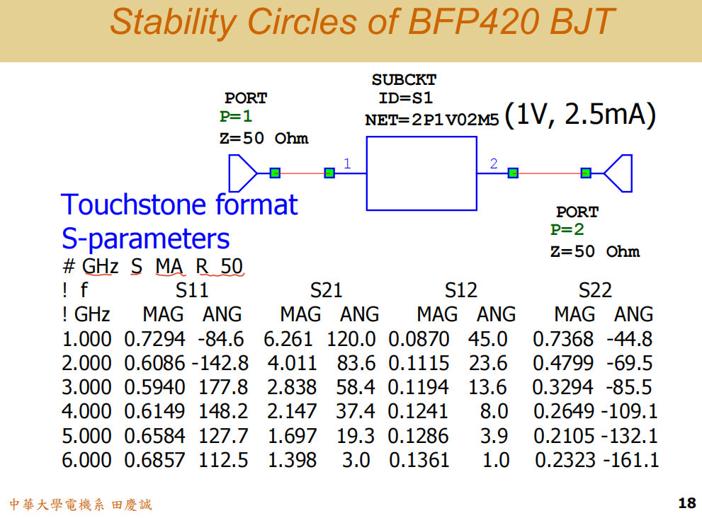 我们可以通过仿真来验证这一设计。以一个具体模型(如BFP420)为例,我们同时设计直流偏置点和稳定网络。