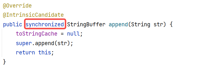 tringBuffer和StringBuilder从⽅法的功能上来说没有太⼤区别,唯⼀的区别在于⽅法的声明上会存在⼀下区别: