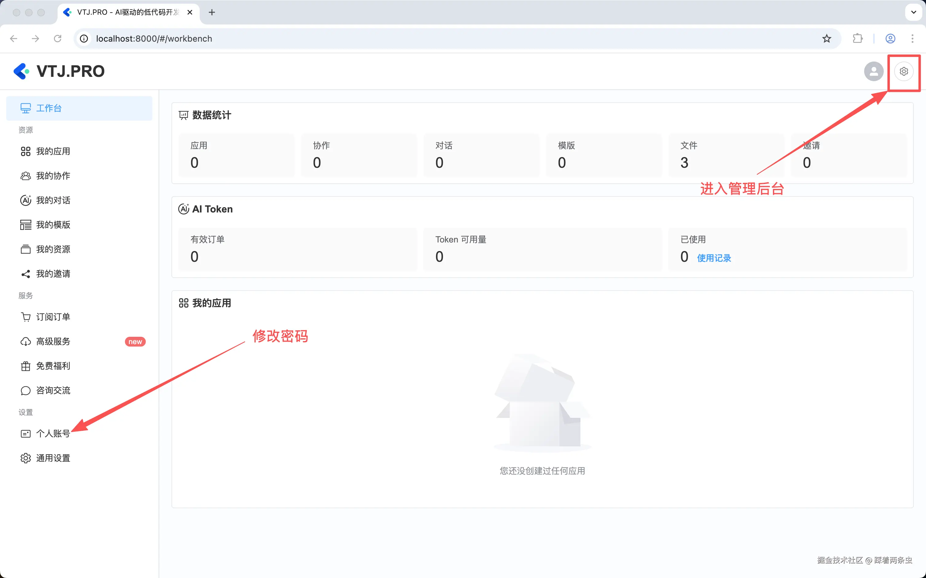 - 工作台界面: 用户工作空间,用于创建和管理个人应用程序和模板