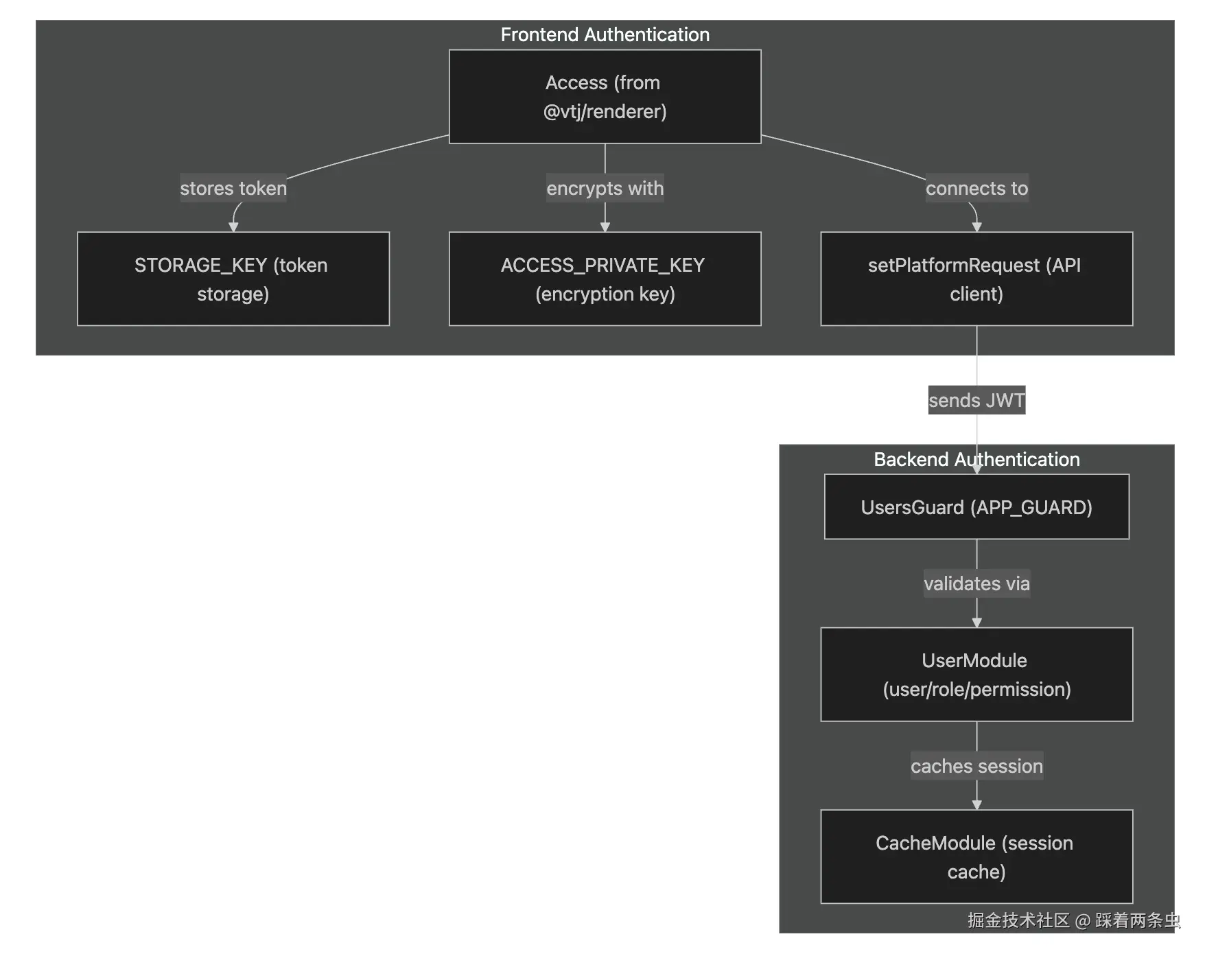 系统实现了双层认证系统:通过UsersGuard的后端路由保护和通过Access类的前端访问控制。