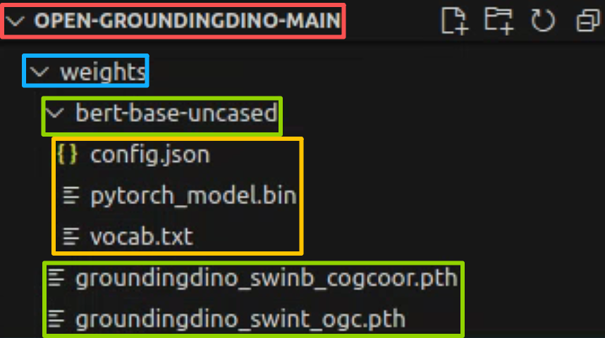 第二,bert权重,配置文件和词汇表(补充:Grounding DINO能跳出词汇提示进一步使用字句也是因为使用了bert)