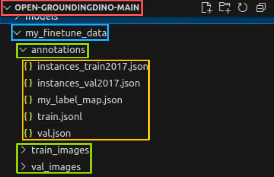 第三,按照下面的步骤将第一步和第二步下载的数据放到open grounding dino库中;