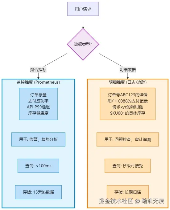 - Prometheus 负责"发生了什么",日志/追踪负责"谁做了什么"