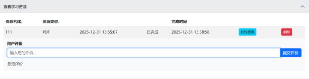 | 增加学习资源类型 | 计划处理 | 将在下一版本中增加视频、音频等资源类型 |