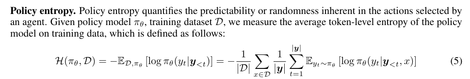 本文旨在克服扩大强化学习(RL)规模以用于大语言模型(LLMs)推理时的一个主要障碍,即策略熵的坍塌(collapse of policy entropy) 。这种现象在未进行熵干预的大规模RL运行中被持续观察到:策略熵在训练早期急剧下降,导致策略模型过于自信 。结果是,这种探索能力的减弱总是伴随着策略性能的饱和。