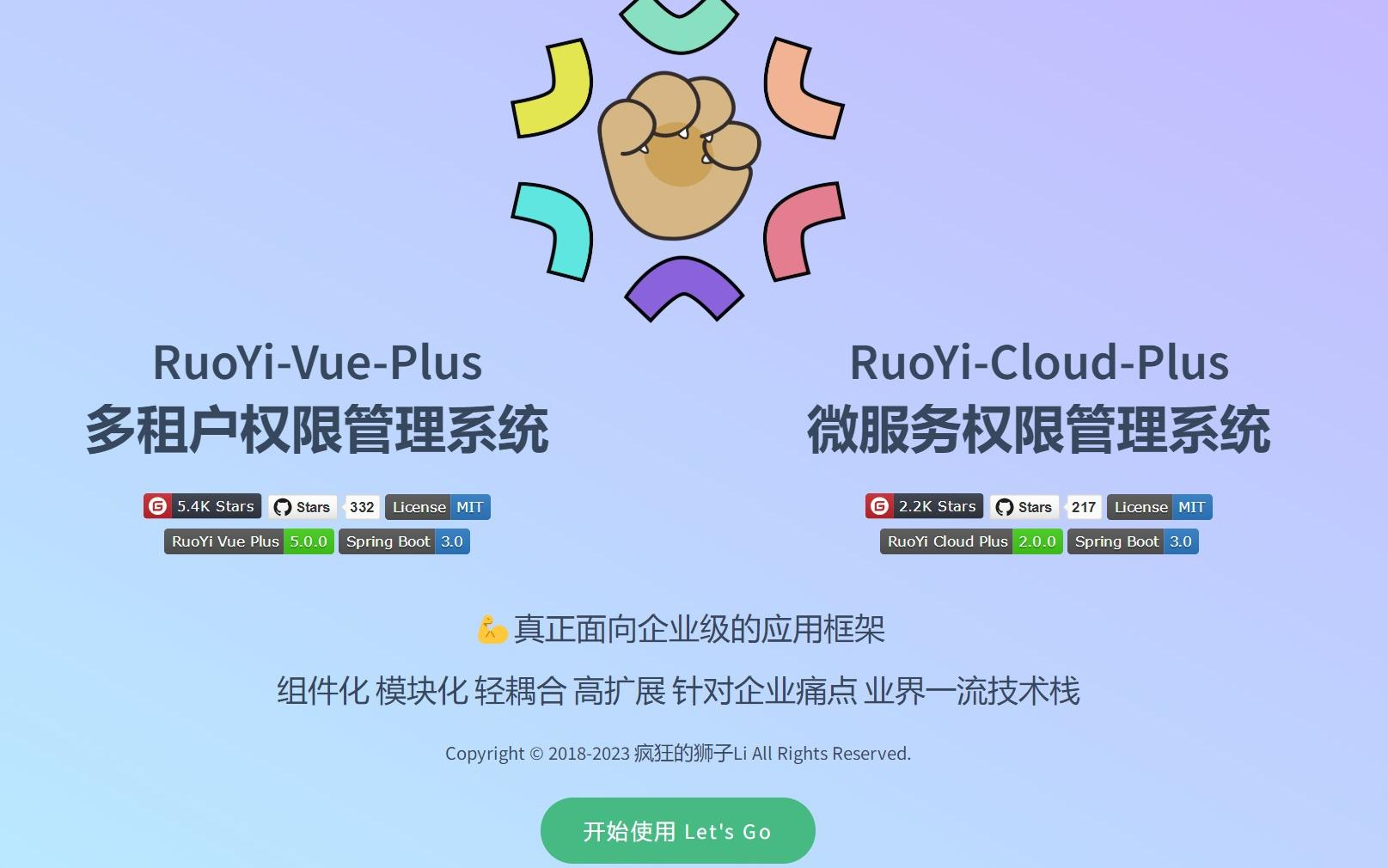 - 内置完整的租户管理体系,支持租户套餐管理、用户数量控制
