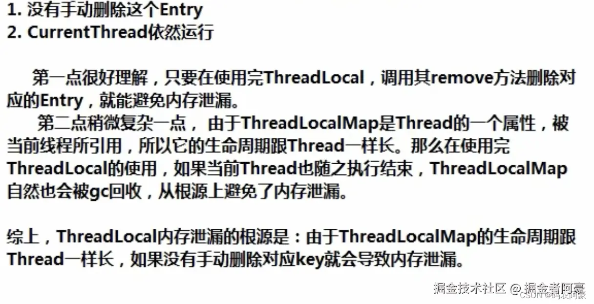 - 也就是说,只要在调用完ThreadLocal后及时使用remove方法,才能避免内存泄漏
