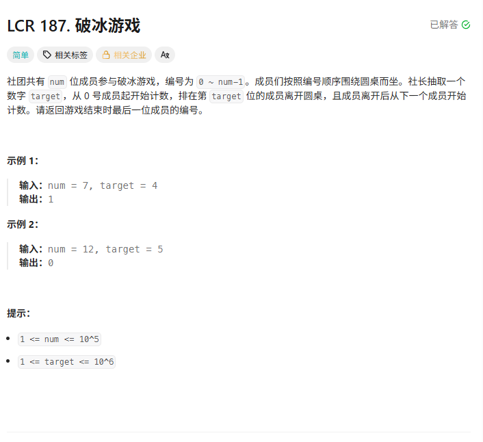 题目虽然名为破冰行动 ,但实际上就是约瑟夫环问题 ,找出最后的幸存者。