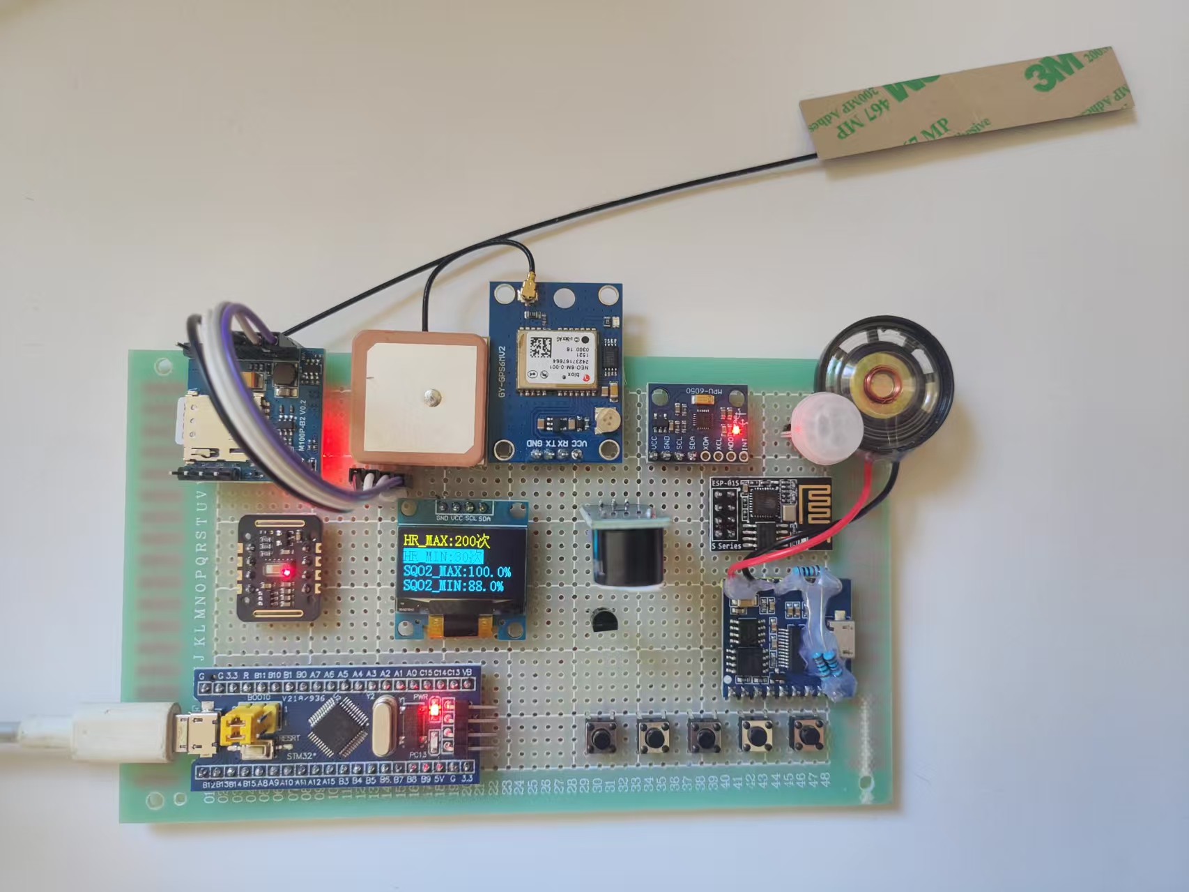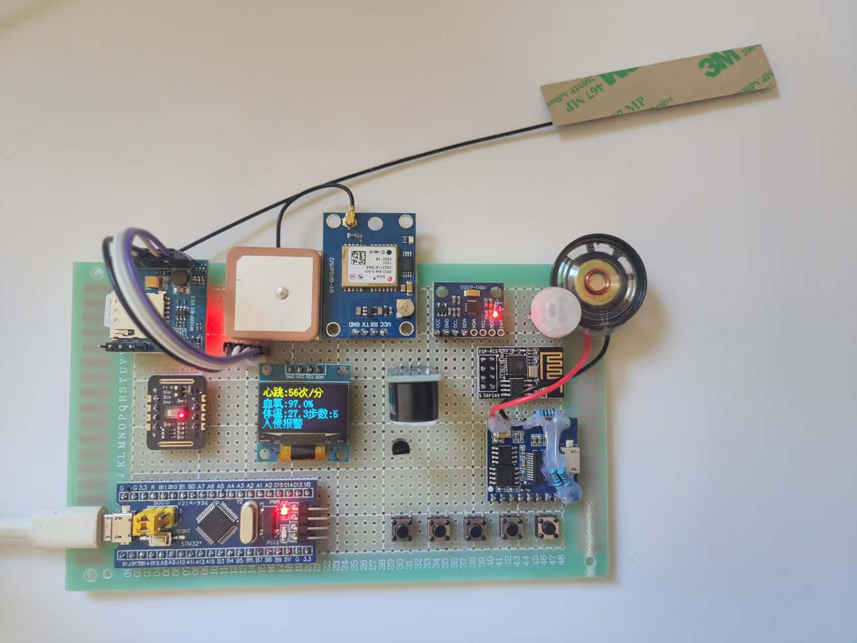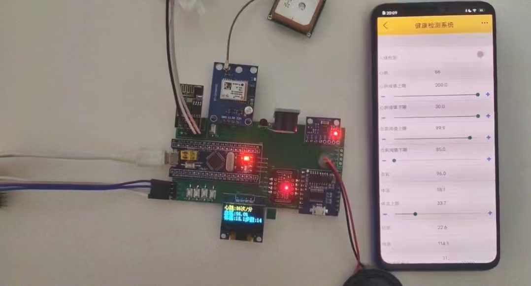 生命体征监测:集成MAX30102血氧心率传感器,实时监测血氧饱和度(SpO₂)和心率(HR)数值