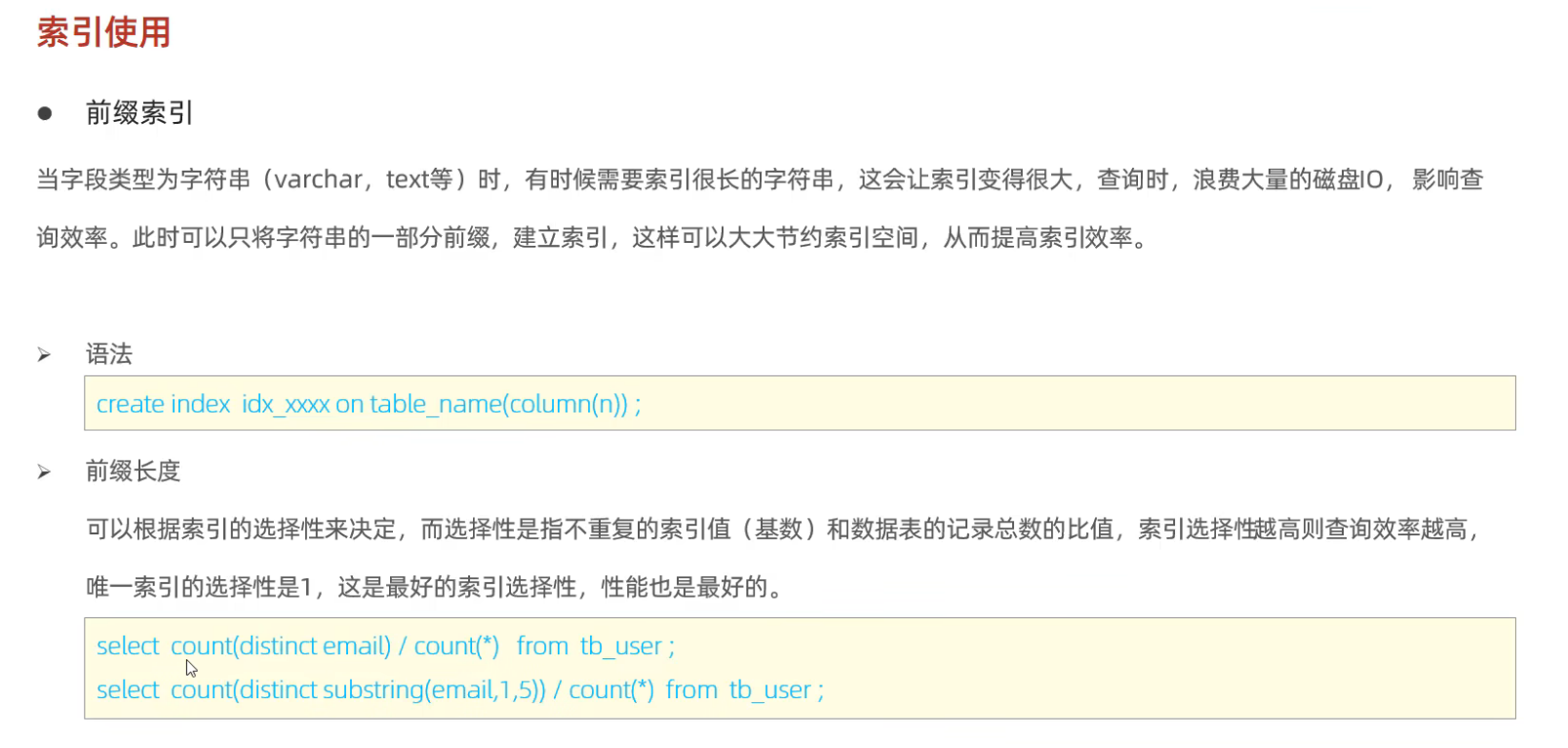 VARCHAR(255)) - 字段值前缀有足够区分度