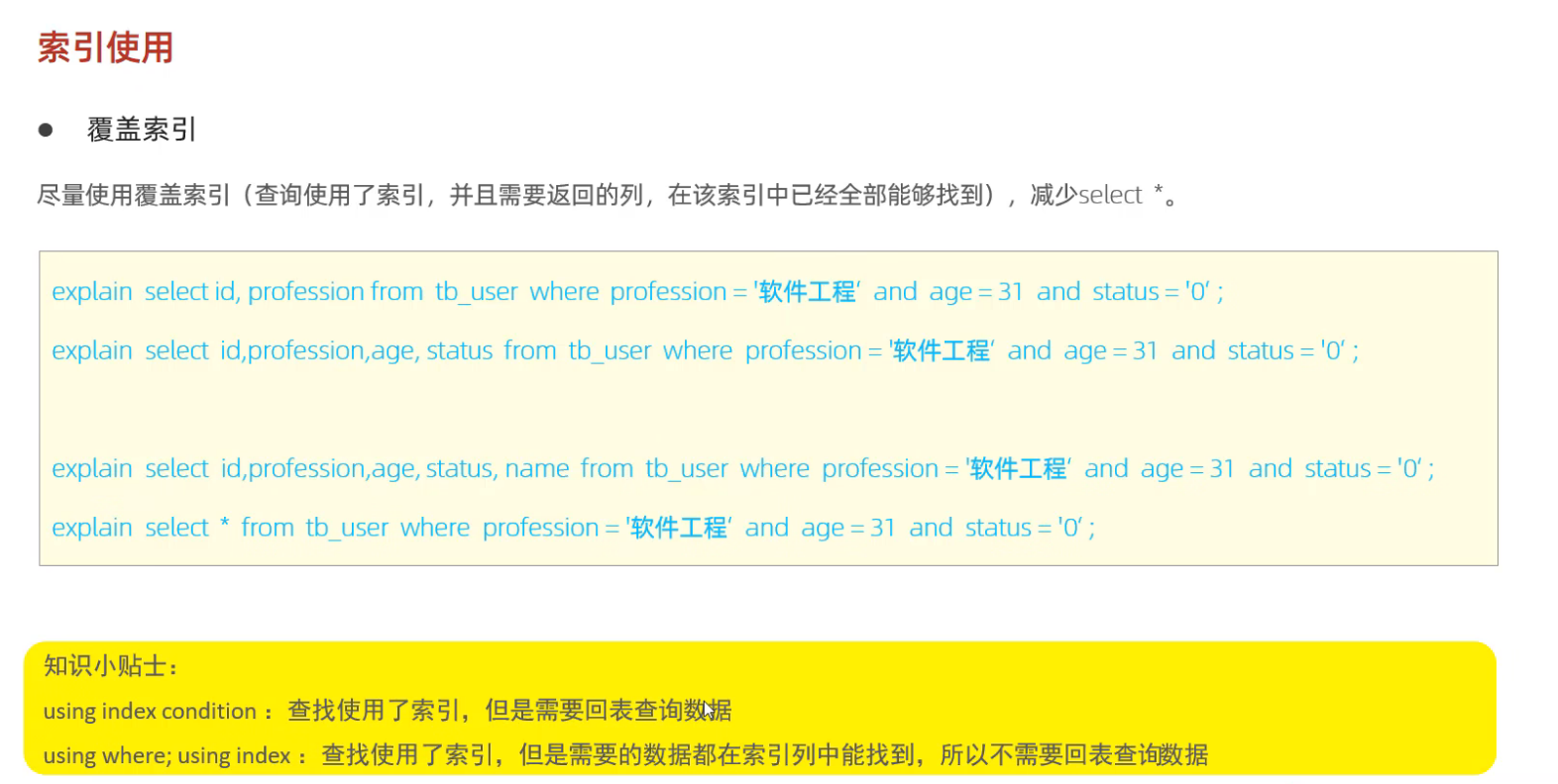 通过将查询字段限制为索引中已有的字段,避免了回表查询。