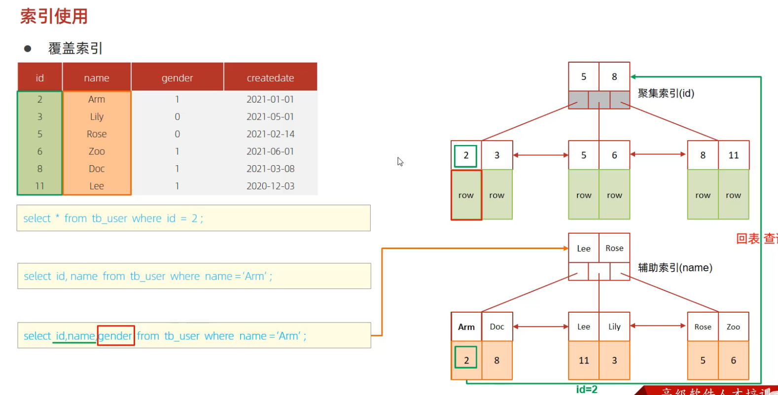 SELECT * FROM user WHERE name = '张三'; -- 需要回表查询