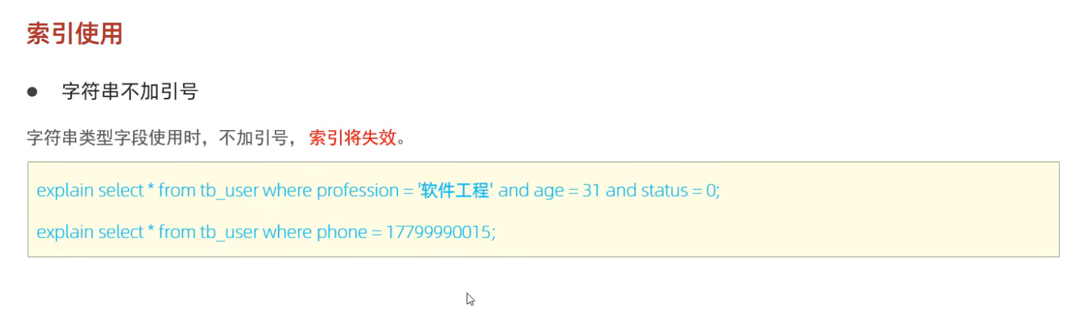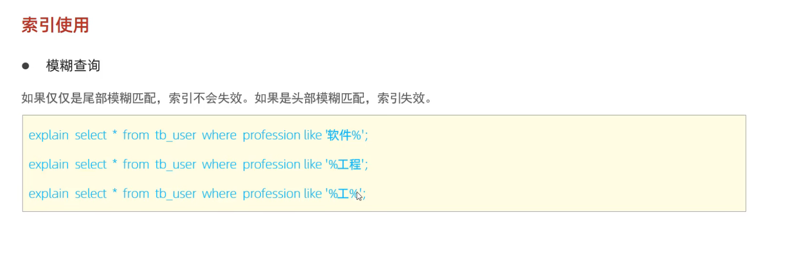 SELECT * FROM table WHERE a = 1 AND b > 2 AND c = 3; -- c列失效