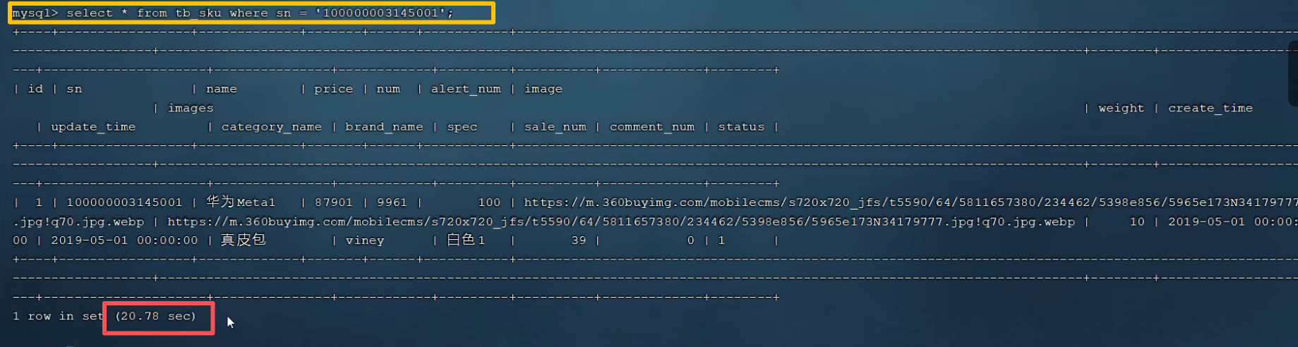 原因很简单,通过主键id查询,有默认的索引查询,而sn并没有建立索引,效率极其低下在庞大的数据量面前。