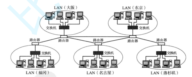 计算机数量更多了,通过交换机和路由器连接在一起
