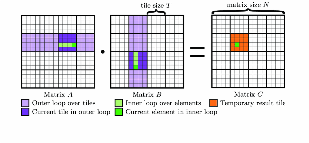 将大型数据集的计算分解为更小的 "块" 或 "瓦片 (Tile)",使其能够放入高速的共享内存或寄存器中进行计算。这是充分利用内存层次结构、减少低速全局内存访问的关键技术。