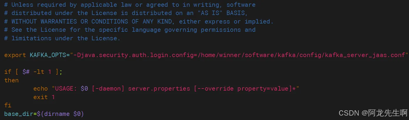 export KAFKA_OPTS="-Djava.security.auth.login.config=/home/winner/software/kafka/config/kafka_server_jaas.conf"