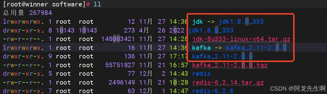 ln -s kafka_2.11-2.0.0 kafka