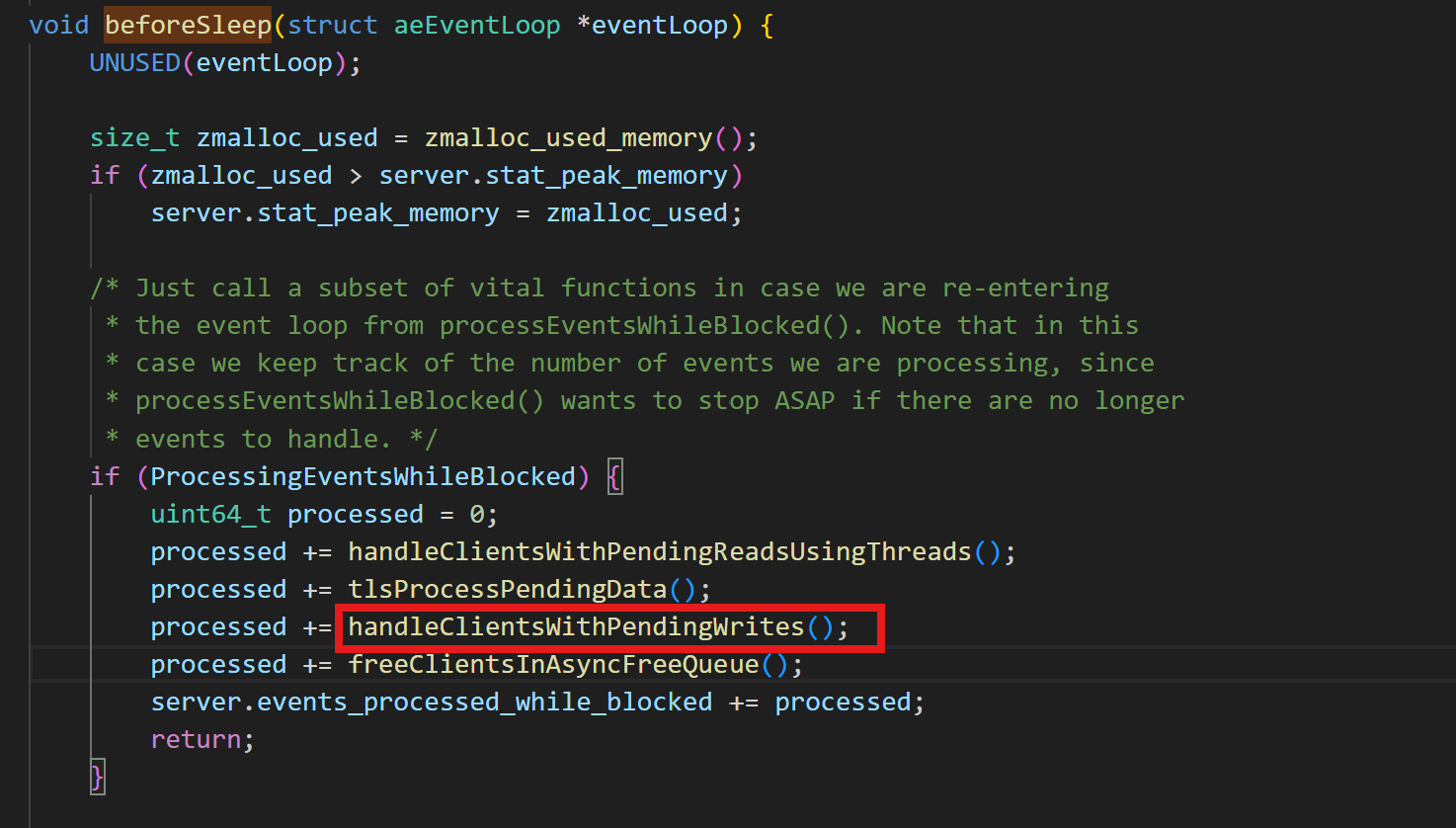 * to the client, we'll call beforeSleep() that will do the