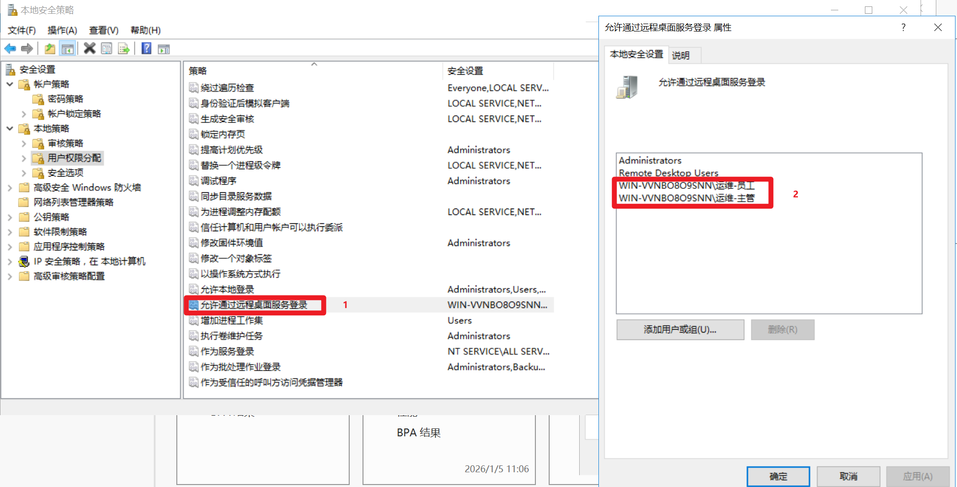 5,win10能够远程连接运维部所有用户账户