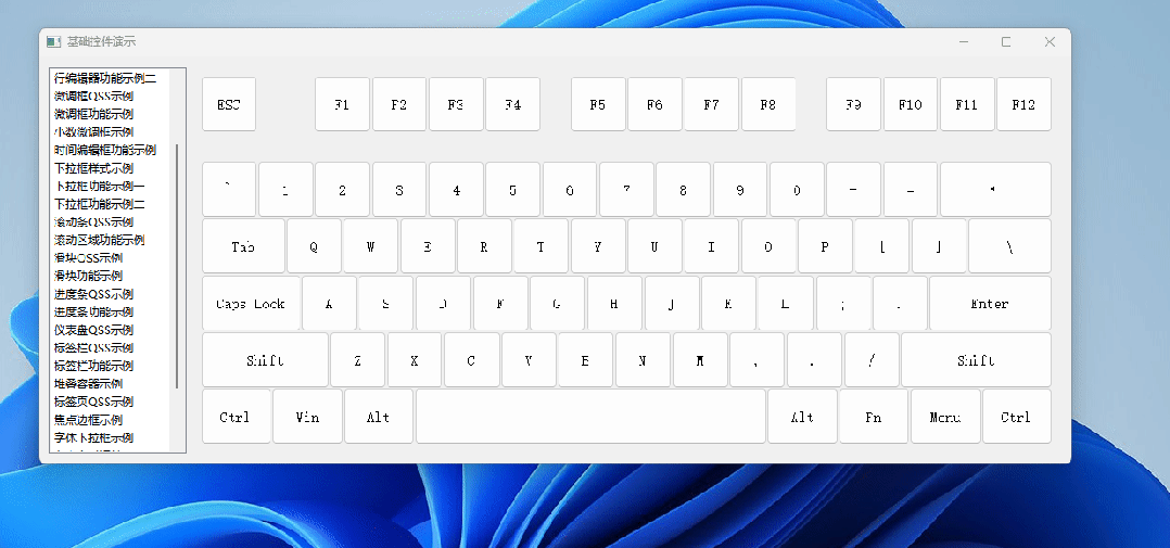 QStringList line5 = {"Ctrl", "Win", "Alt", "", "Alt", "Fn", "Menu", "Ctrl"};