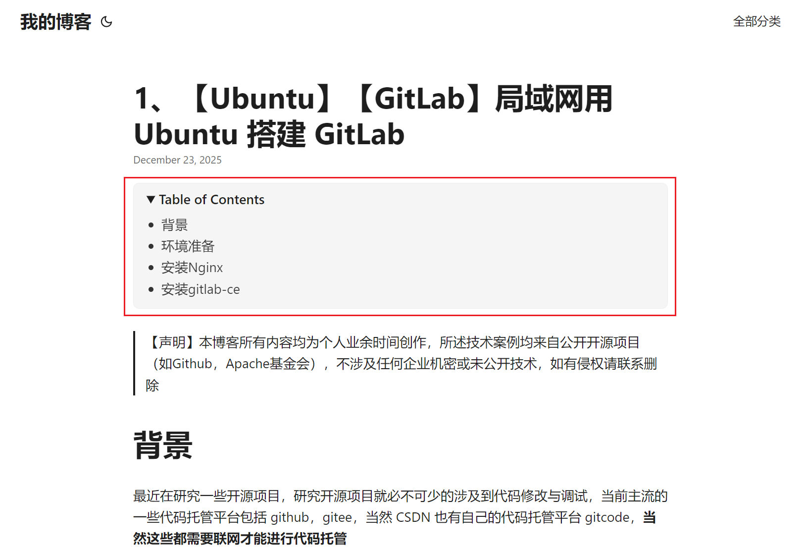 【Ubuntu】【Hugo】搭建私人博客:文章目录(三)