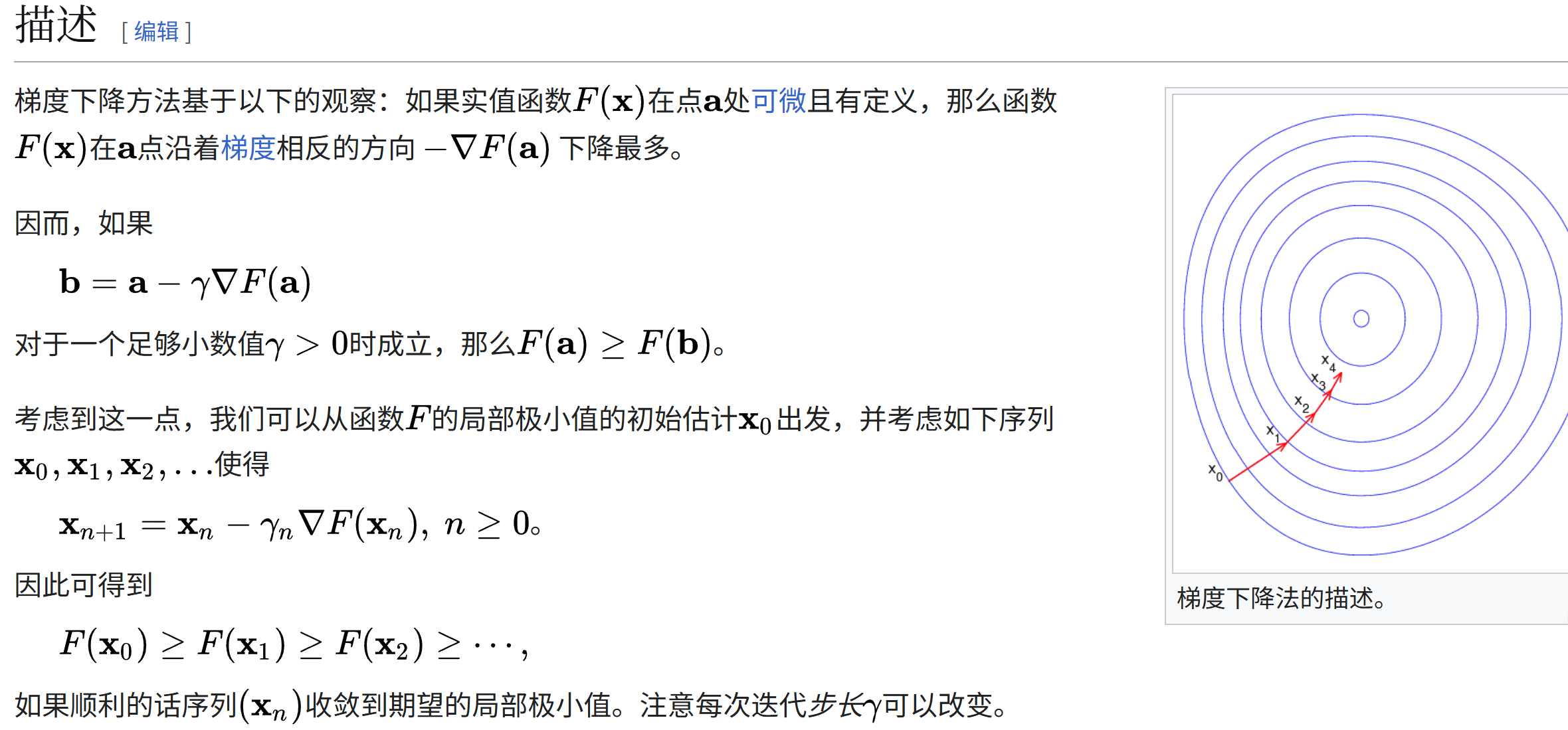 - 公式意思:看脚下的坡度,往反方向迈固定步长。