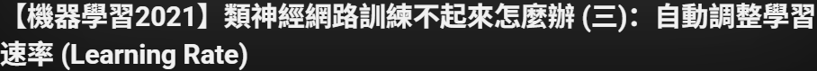 也就是能够做到,在error surface中,遇到坡度大梯度大的地方,学习率调小慢慢走;遇到坡度小梯度小的地方,学习率调大走快一点。
