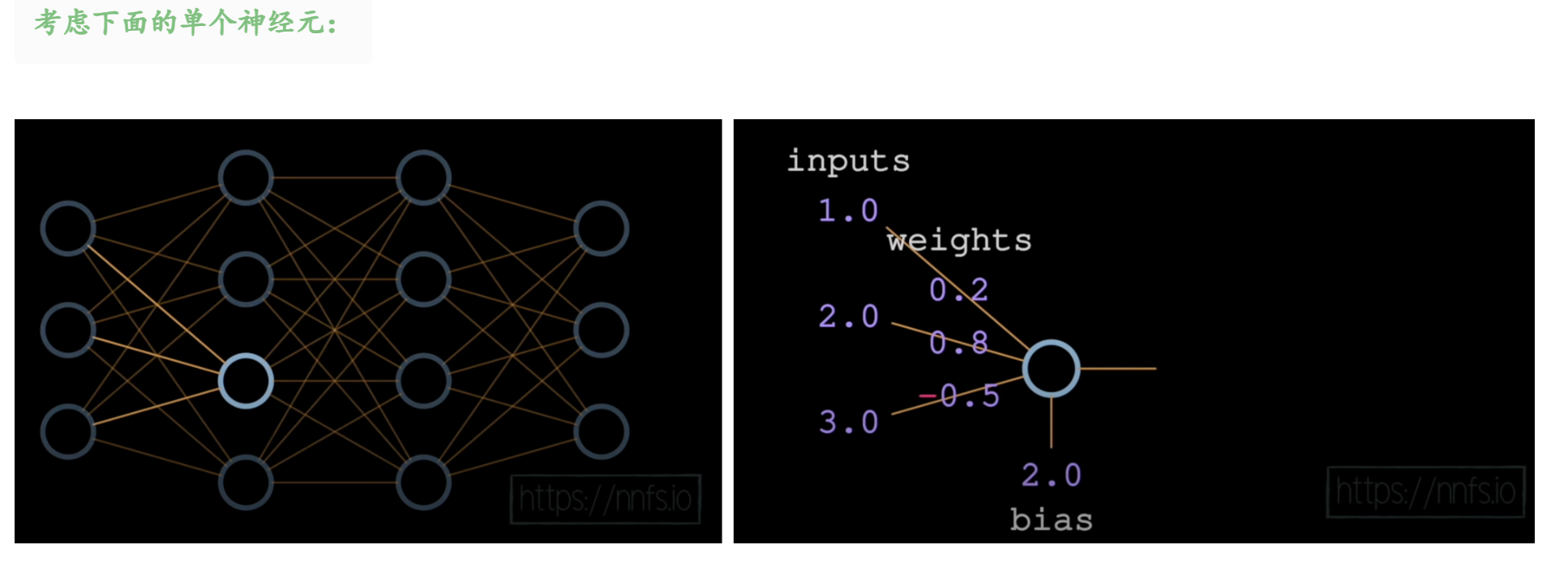 但是这两个神经元都是(3,),也就是说明 inputs 和 weights 都是一维数组,不是严格的二维矩阵。