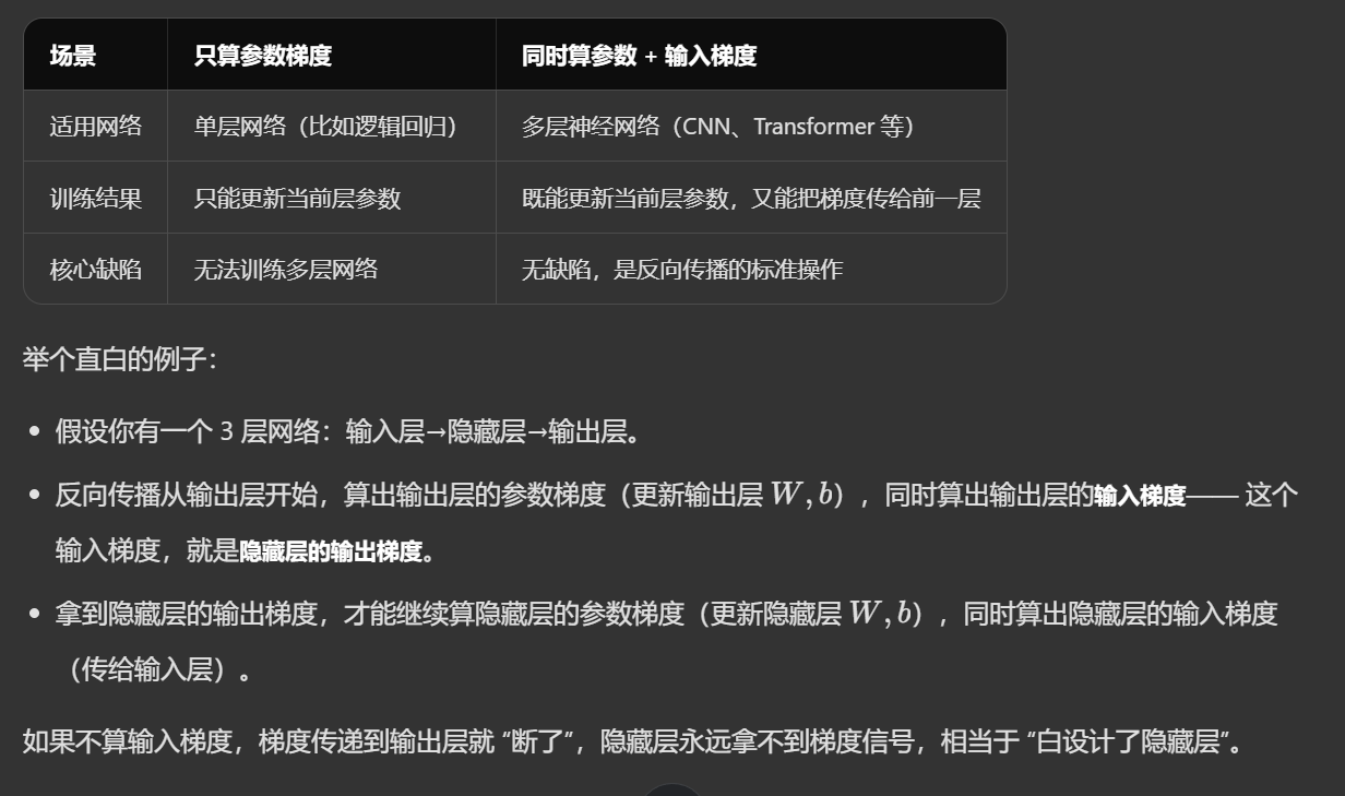 - 两个梯度:参数梯度与输入梯度