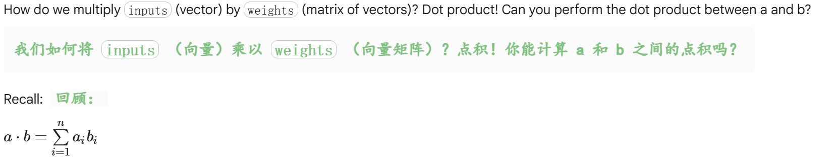 标量 / 向量与矩阵自动扩展相加 | (inputs @ weights) + bias |