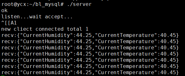在服务器命令栏中输入./server开启监听,此时即可观察数据上传情况。