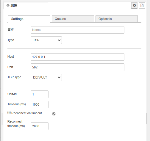 双击Modebus-Red 节点,对modbus-red节点进行属性设置,如下图。
