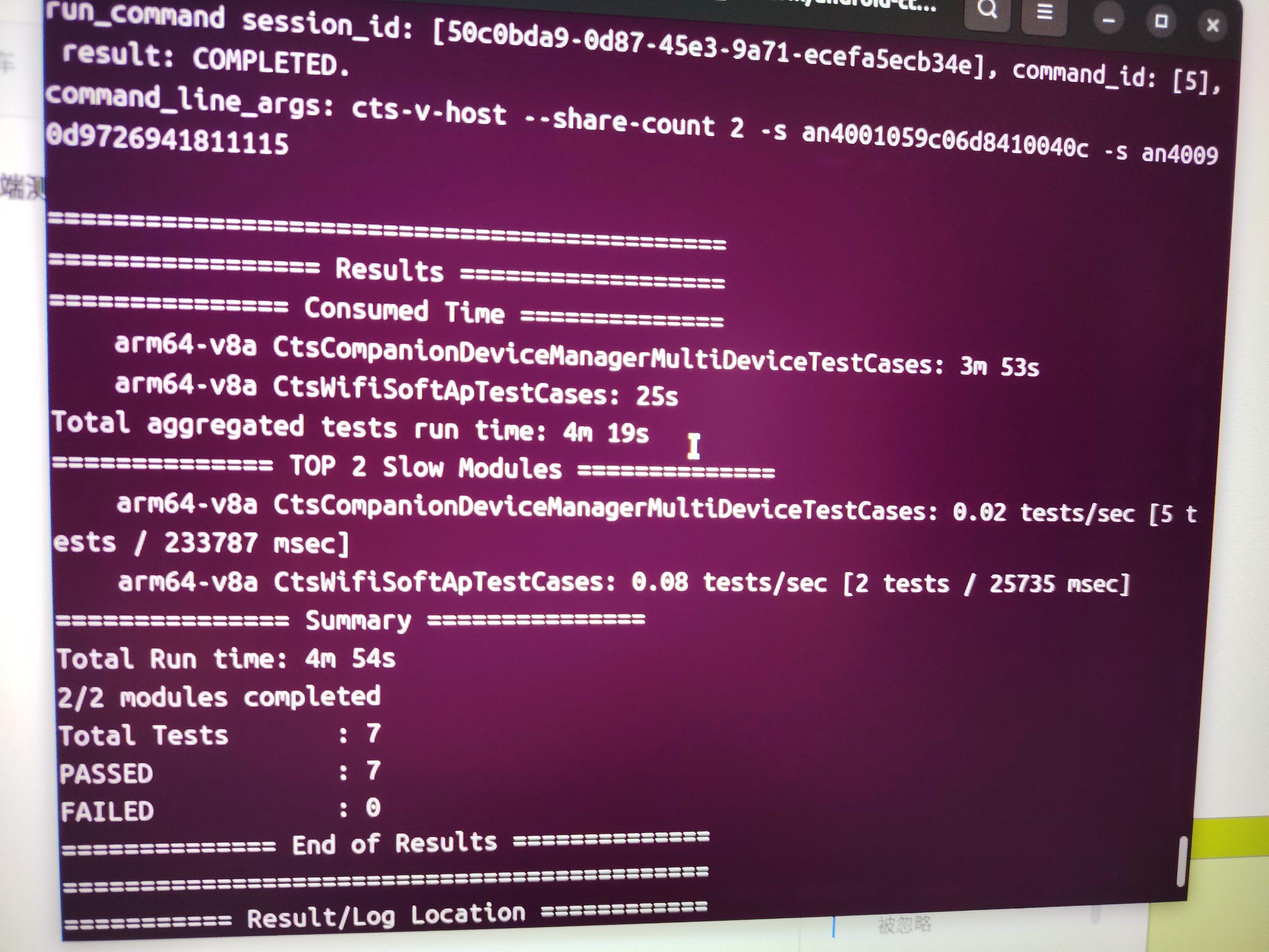指令:run cts-v-host --shard-count 2 -s 序列号1 -s 序列号2