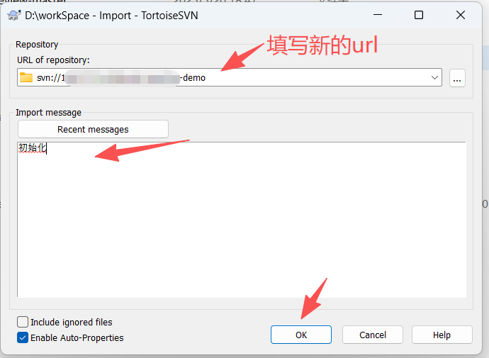 ps:复制的目录需要删除.svn文件夹,否则提交代码时不是新的仓库地址。