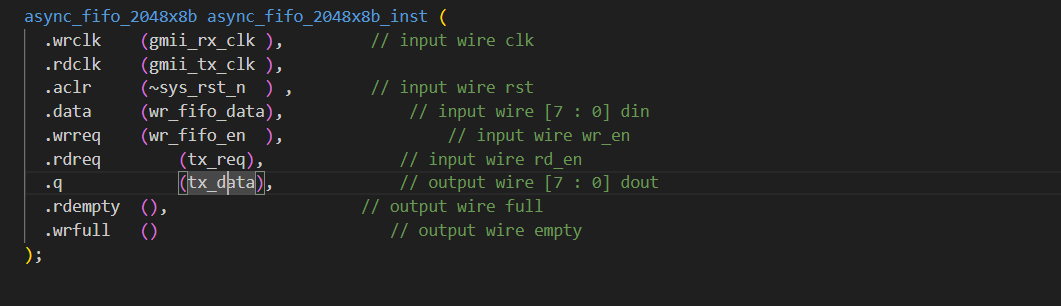 - 发送侧:当 udp_tx 发出 tx_req 时,从 FIFO 读出一个字节作为 tx_data;