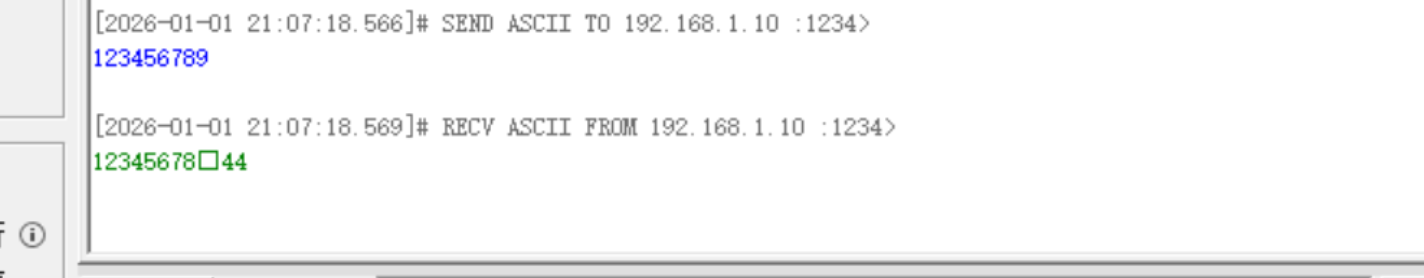 - 回包 UDP 长度字段与发送字节计数随追加长度同步更新,保证接收端显示无多余/缺失字符。