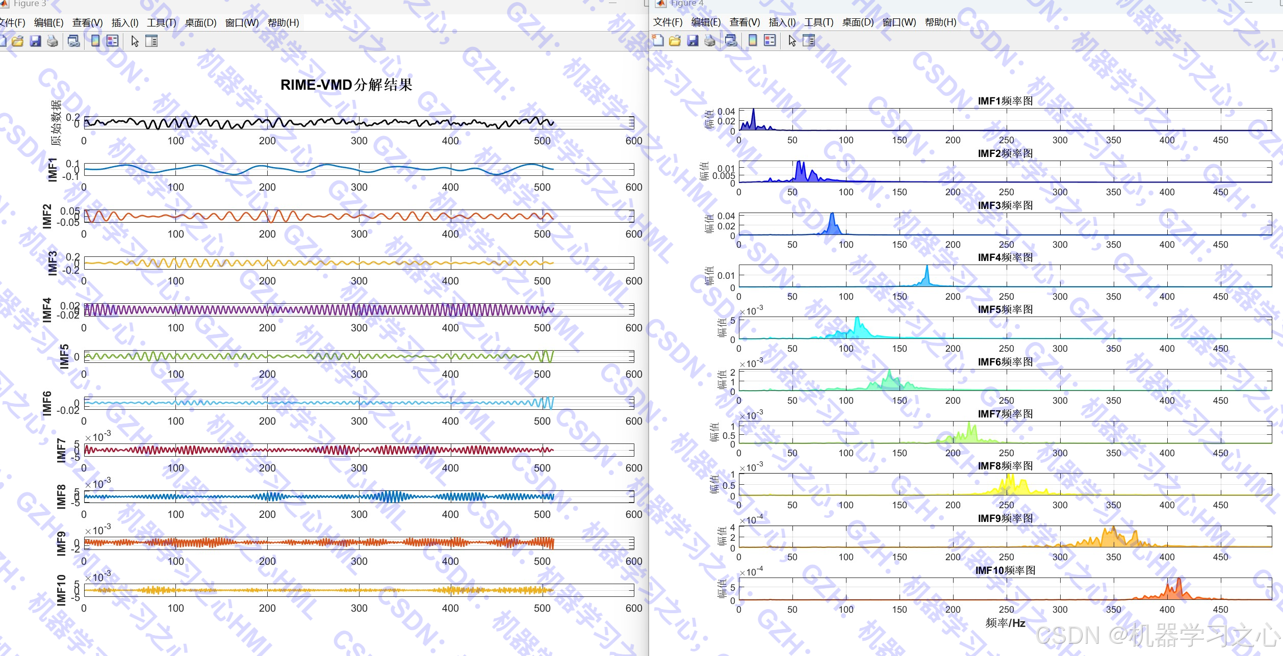 - RIME优化VMD参数:自适应选择最优的K和α。
