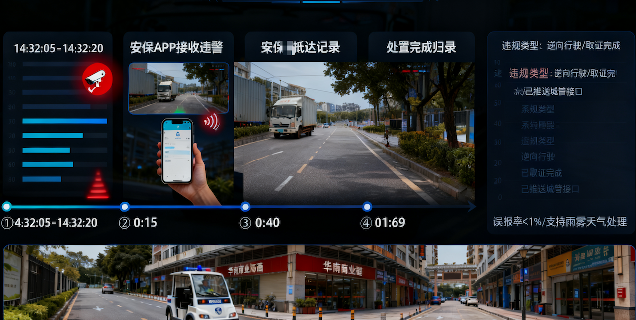 - 事件闭环:告警→安保APP定位→现场处置→报告归档,全程<90秒。