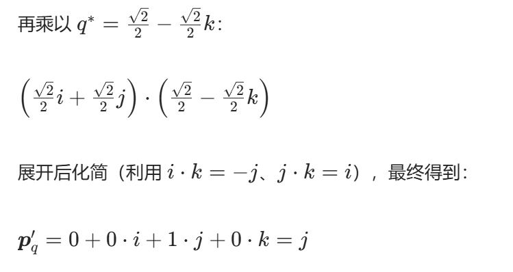 4.结果是纯虚四元数,它的虚部就是旋转后的向量。