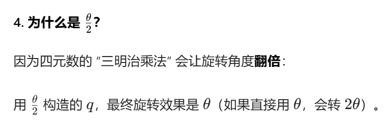 - 形式 1:q=(w,v),其中 v=(x,y,z)(向量);