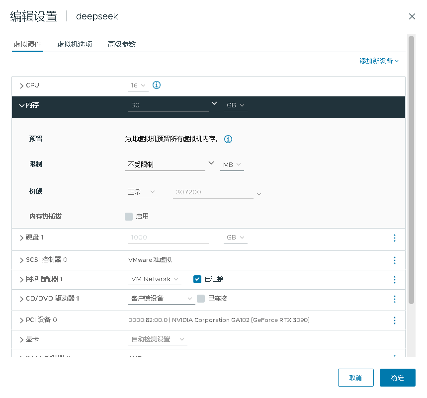 "虚拟硬件"------"内存"------"预留",勾选"预留所有客户机内存"。