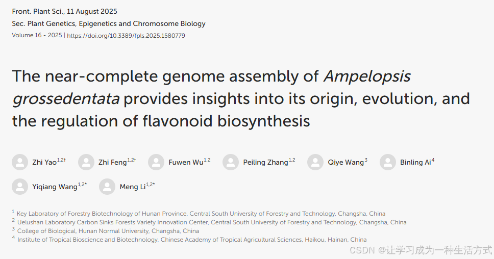 显齿蛇葡萄染色体级别的基因组精细图谱解析------ 揭示物种起源演化及黄酮类化合物生物合成调控机制