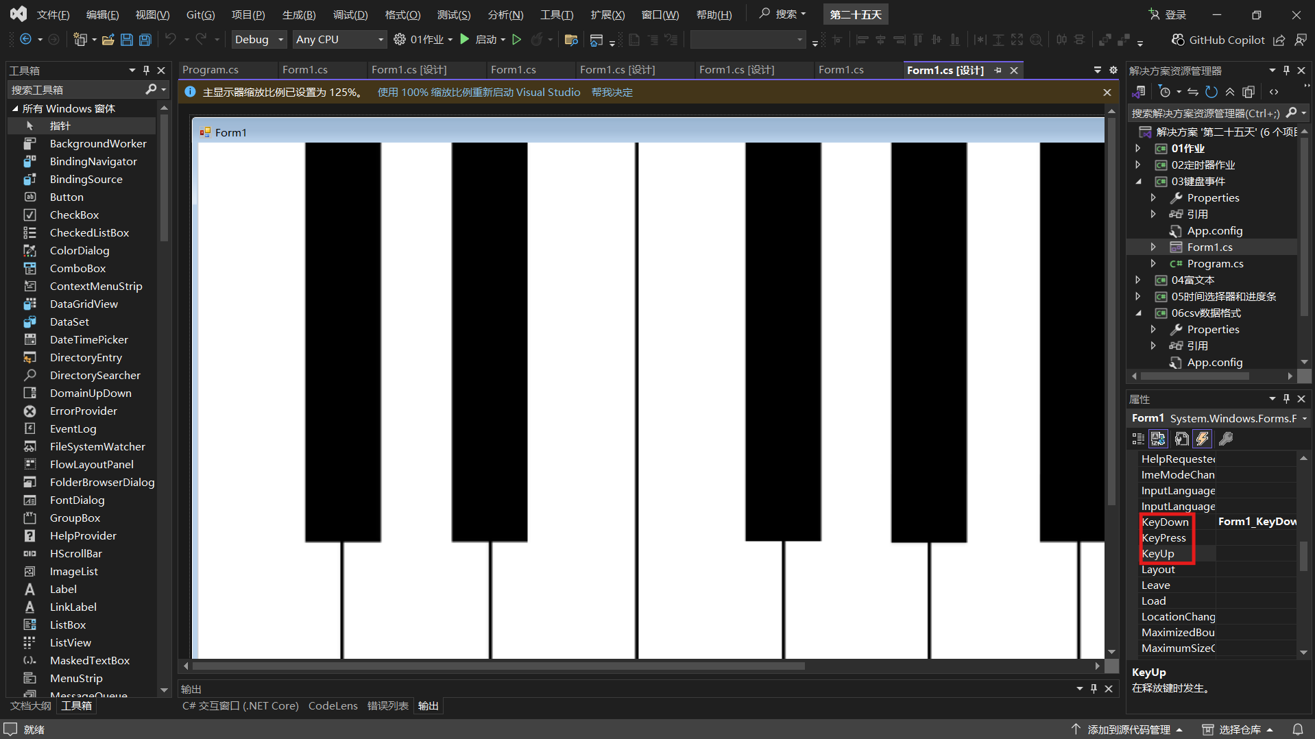 窗体form的KeyDown 属性KeyPress 属性KeyUp属性都是键盘事件。