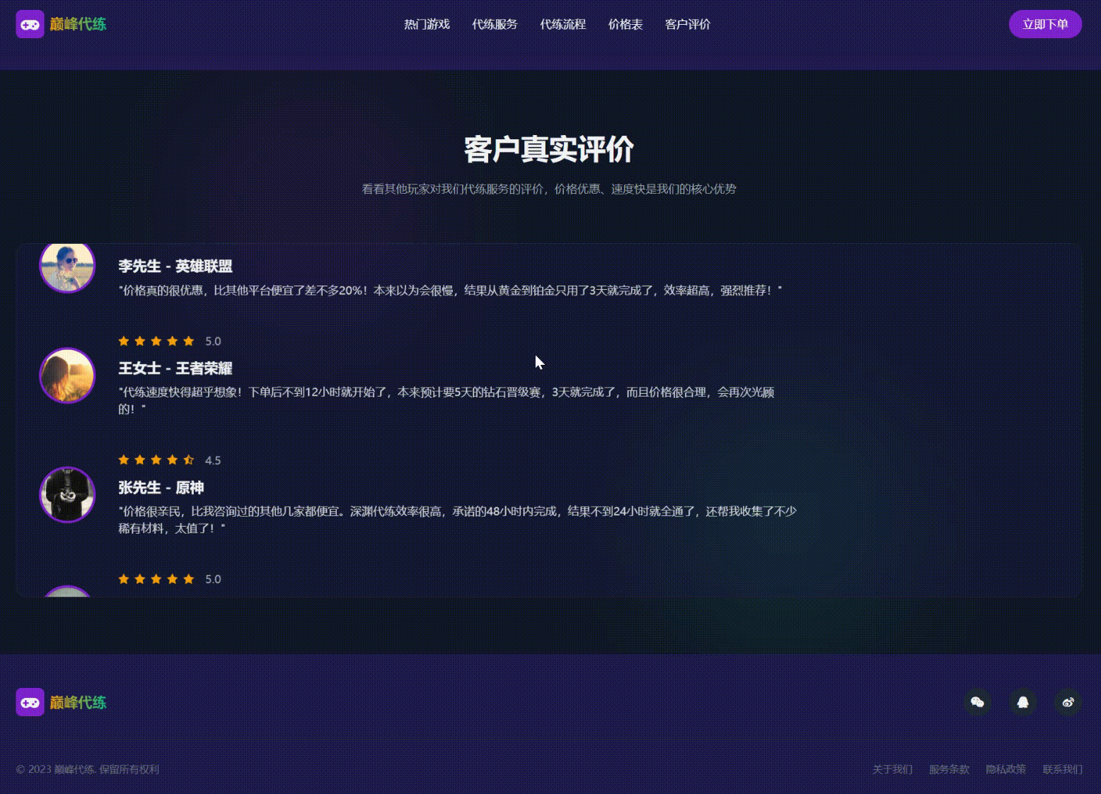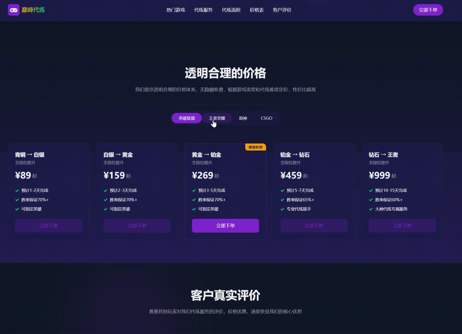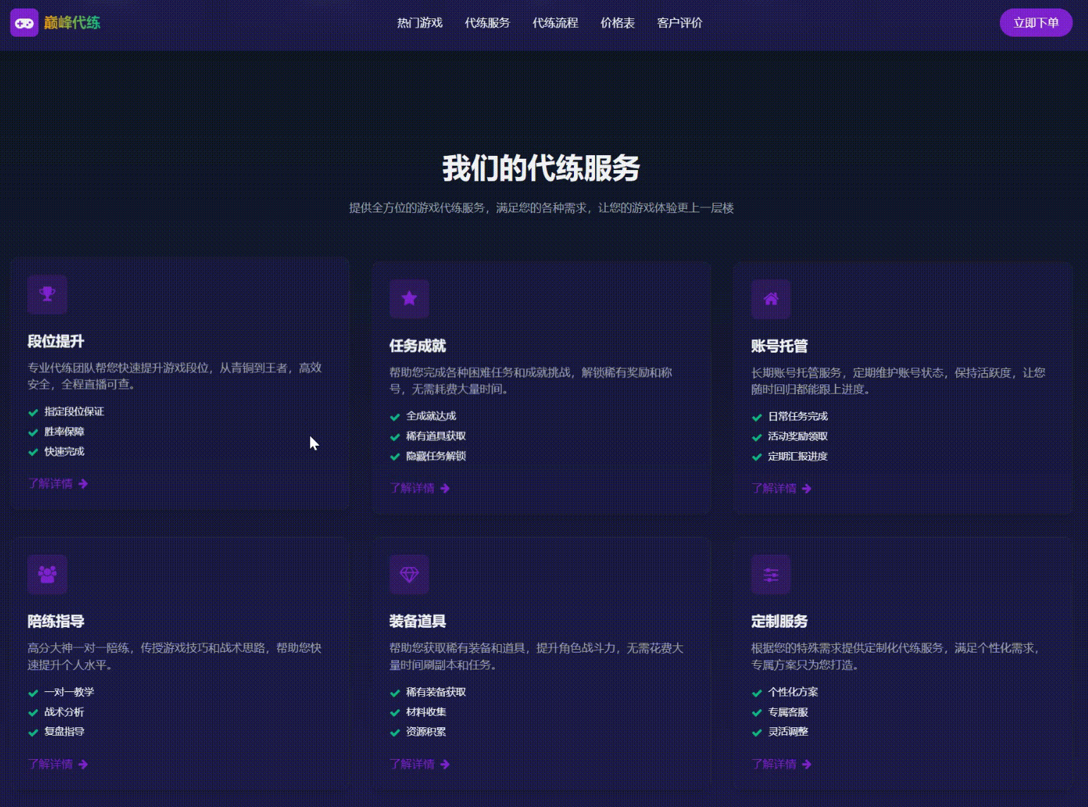 本模板特色如下: 轻量高效,快速上线 代码精简:去除冗余动画和复杂特效,保留核心交互,加载速度提升 40%,适合各类服务器配置一般的网站 结构清晰:HTML 代码按"导航 -- 英雄区 -- 核心模块 -- 联系区"分层,后续开发人员可快速修改内容(如替换游戏名称、价格等)