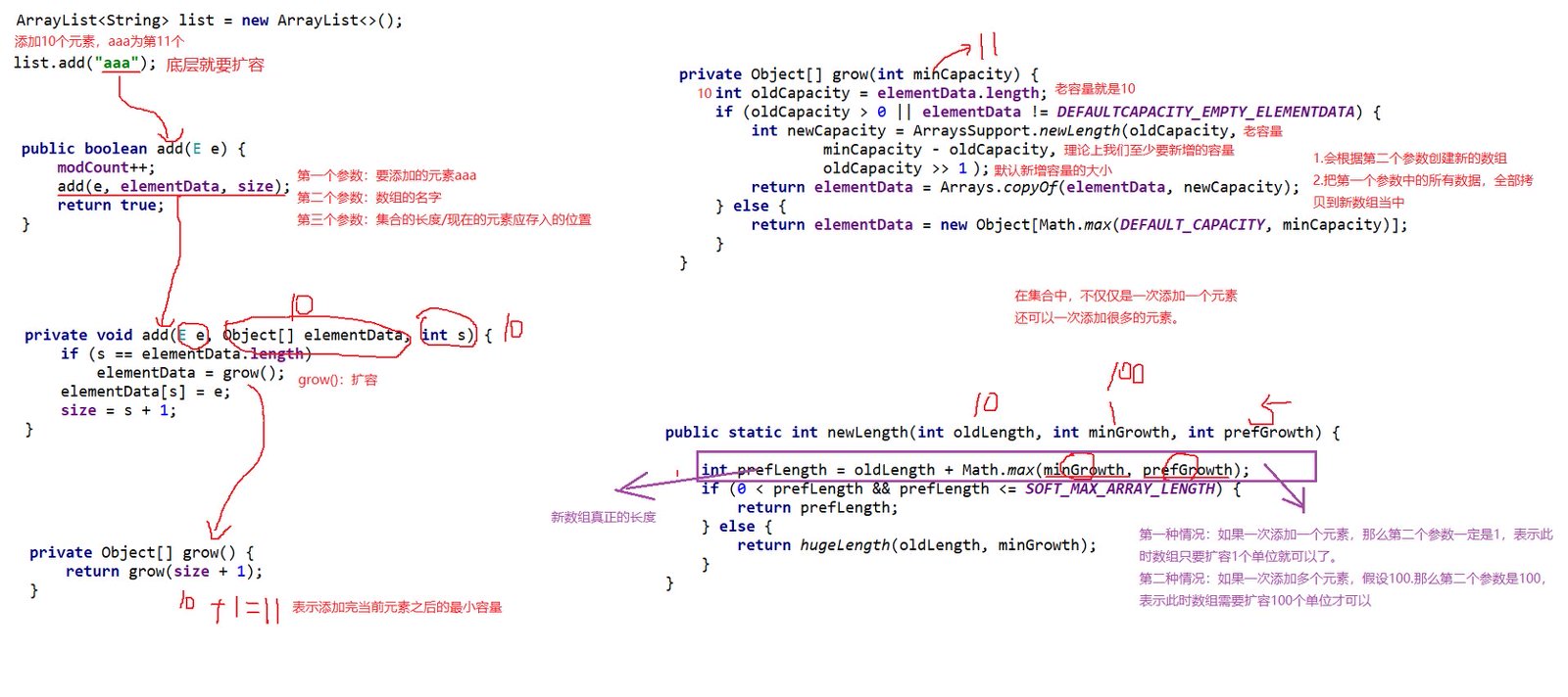 举个例子: 在一开始,如果默认的长度为10的数组已经装满了,在装满的情况下,我一次性要添加100个数据很显然,10扩容1.5倍,变成15,还是不够,